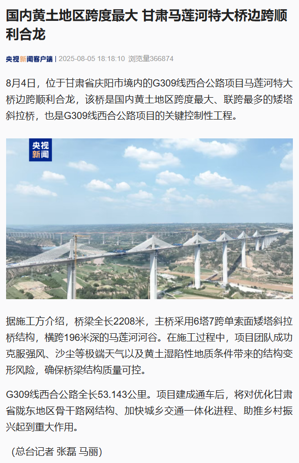 - 甘肅工程咨詢集團監(jiān)理項目取得重大突破:國內黃土地區(qū)跨度最大 甘肅馬蓮河特大橋邊跨順利合龍
